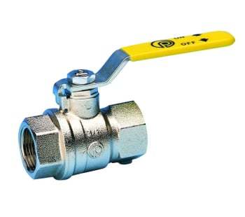 Gaskuglehane med fuldt gennemløb, muffe/muffe. Gult stålhåndtag. (Læs mere)